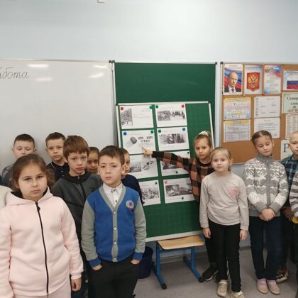 Ученики услышали видеообращение Дмитрия Мурина и Никиты Благово, которые поделились воспоминаниями о блокадном детстве, а также просмотрели видеоролик о Тане Савичевой – девочке, блокадный дневник которой стал символом осаждённого Ленинграда. Педагоги рассказали о том, как жили и работали люди в осаждённом городе, показали кинохронику времён блокады, поговорили о других памятных исторических датах и о подвигах молодогвардейцев. Дети с замиранием сердца слушали о трагических судьбах детей и взрослых.